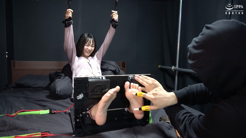 ソフトな筆にも大声で反応してしまうのんちゃんの敏感な足をガッチリ拘束!腕も天井から吊って逃げられないようにしています。そんな状態で弱点の足裏をくすぐられ、どんなくすぐり方にでも笑ってしまうのんちゃんを堪能できる作品です!今作のお気に入りポイントは、新たな責め方をする度、くすぐり初めに一番大きな反応をしてくれるのんちゃんの素直さ!不意打ちのような反応が何回も楽しめますので、好きな方は是非お楽しみください。足指も拘束され、ローションも塗られ…とだんだん激しくなる責めに果たしてのんちゃんは耐えられるのか!?もちろんヘッドスパブラシ、電動くすぐり棒の貼り付けくすぐりも収録!更に空いた部分に指が襲いかかり、追加で悶えていくのんちゃんをどうぞ堪能してください。足裏をくすぐられ爆笑してしまう子を、足枷拘束してくすぐりたい方にオススメです!